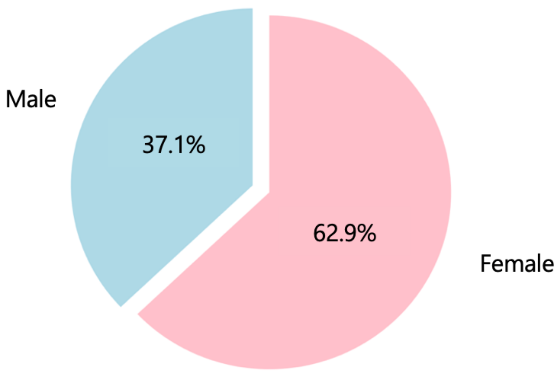 The gender distribution of the survey respondents shows that 69.92% were female, while 37.01% were male. This skew towards females aligns with previous research that suggests women are more likely to engage in health-related activities and seek medical information online. This trend is particularly important for understanding how women interact with digital health technologies and may guide further development to better address the needs of female users (see Figure 4) (31-33). Additionally, gender representation in studies concerning healthcare technology adoption and usage is essential for concluding the effectiveness of these tools across different population groups.