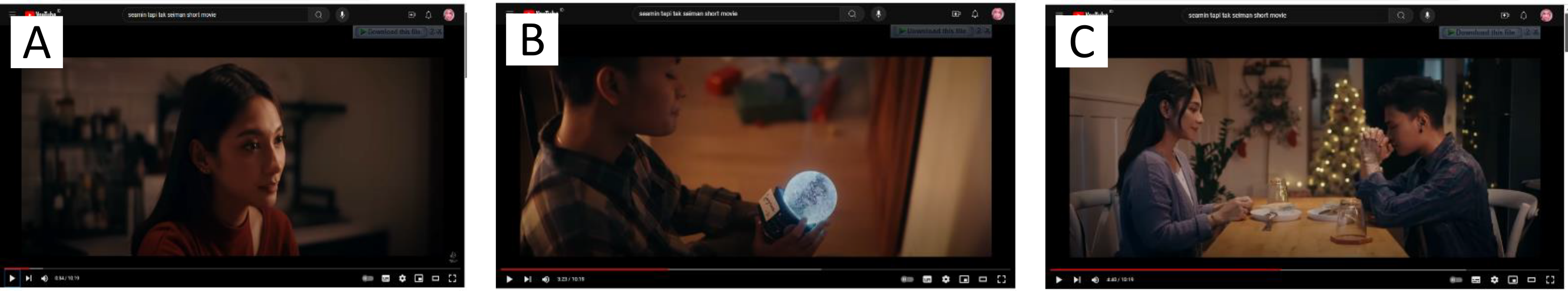 Legisign is embodied through religious rituals, such as Nisa performing sholat and the presence of Christmas symbols during a shared meal. These scenes signify contrasting religious norms and values, highlighting the everyday tensions faced by couples from different faiths (23). By placing these contrasting rituals within one visual frame, the video foregrounds institutional boundaries as lived emotional experiences, transforming faith into an enacted social code. The juxtaposition invites critical reflection on how religion shapes interpersonal interactions, constructing love not merely as emotion but as a moral negotiation.
