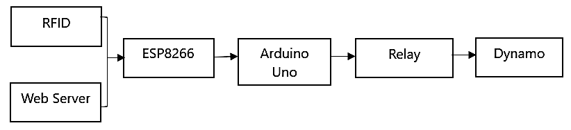 The architecture centered on the Arduino Uno as the primary controller. The RC522 RFID module served as the input device, sending tag data to the Arduino, while the ESP8266 module enabled wireless synchronization with the local server. When an authorized RFID tag was detected, the Arduino triggered the relay to activate the motor and drive the gate. The system architecture diagram can be seen in Figure 1.