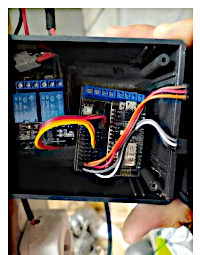 Before testing, the IoT-based RFID gate control system was assembled following a structured procedure that included system design, implementation, and validation. The system incorporated an Arduino Uno microcontroller, RC522 RFID reader, ESP8266 Wi-Fi module, two-channel relay, and a DC motor connected to a galvanized steel gate weighing 8.25 kg. Electrical wiring, shown in Figure 2, provided stable power distribution and correct signal routing between components. Control logic programmed in Arduino IDE enabled RFID authentication, motor activation, and real-time database logging using an Apache–MySQL web server.