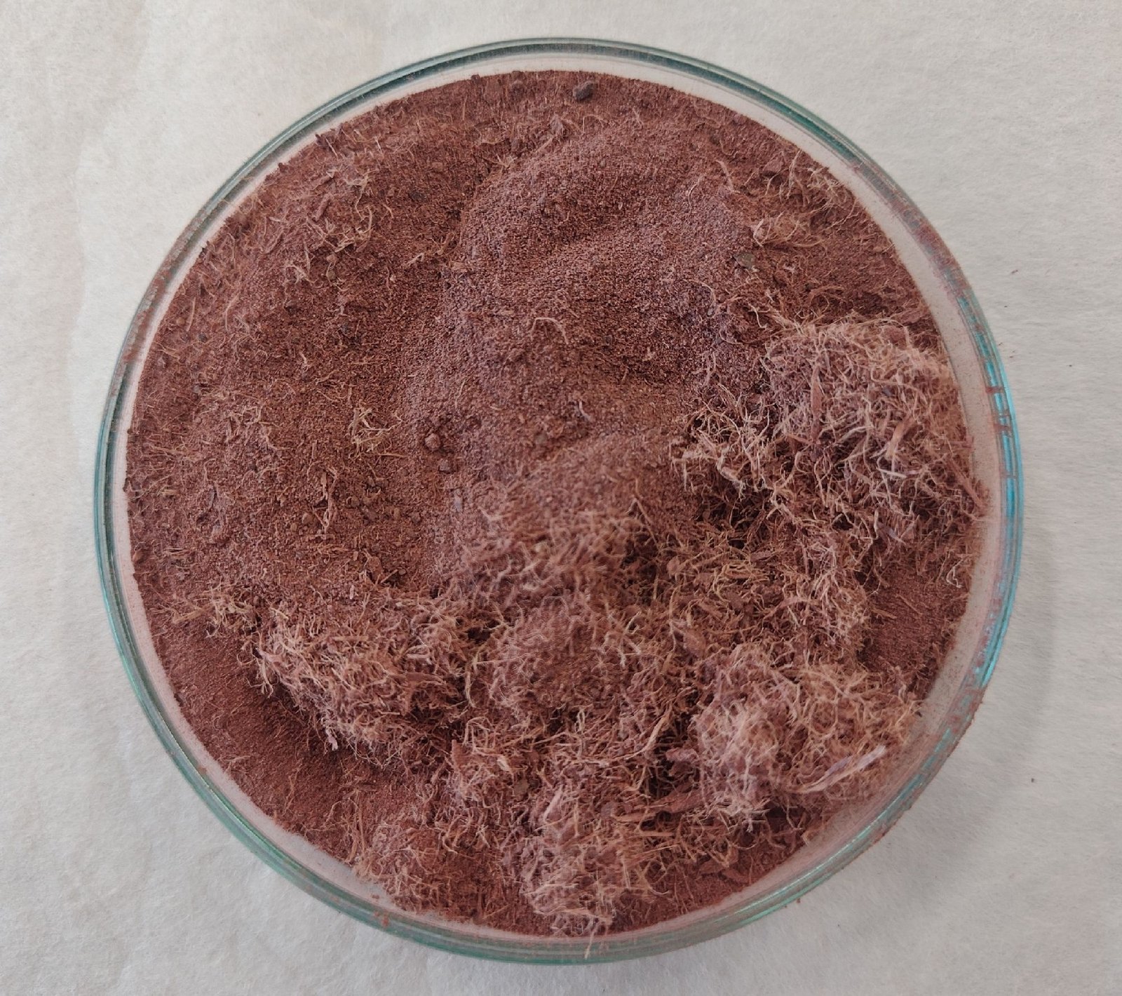 The root of M. tenuiflora was purchased online through the Mercado Libre Mexico commercial platform (mercadolibre. com. mx) under the brand name Benlaifh, a supplier of natural products. It was collected in the community of Cintalapa de Figueroa, Chiapas, Mexico. Due to the commercial nature of the acquisition, no voucher specimen was deposited in an herbarium. The root appears as an intense reddish-brown powder with a fibrous texture, a characteristic smell, slightly resinous aroma, and a slightly bitter, astringent taste (Figure 1). Once obtained, the material was stored at -70 °C until use. It is noteworthy that the raw root material of M. tenuiflora is not classified as a controlled or illicit substance under current Mexican federal legislation.