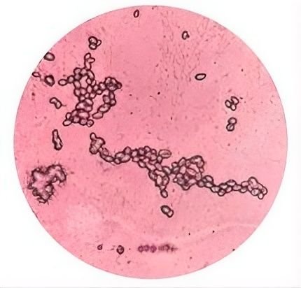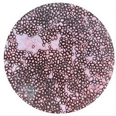 Based on Figure 4, the capsule staining test results were negative. No halo or capsule structure was detected, because Candida does not produce polysaccharide capsules (20). Capsule staining tests on yeast of the Candida genus have been conducted by (22), where based on microscopic observations, no capsules in the form of pale blue circles surrounding purple yeast cells were observed in the isolates examined.